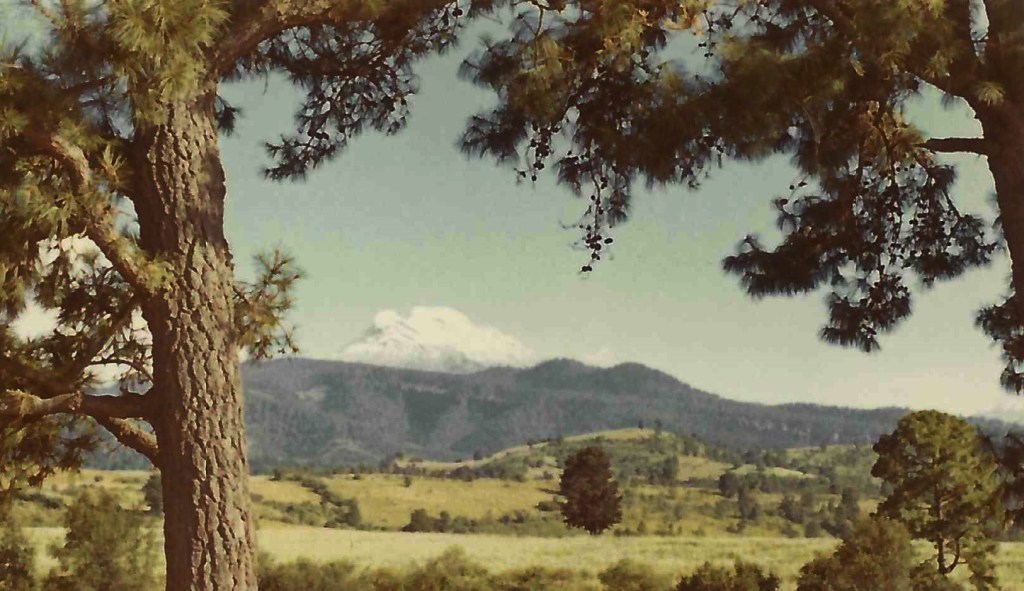 One of my dad’s favourite daytrips was to follow part of this route, making a couple of stops on the side of the road to take pictures of the volcanoes, on our way to Amecameca. The photos in this post are from one of our trips (circa 1969). The photo at the top of this post was probably taken outside Chalco, showing the Iztaccihuatl on the left, and the Popocatepetl appearing in the background, to the right.
