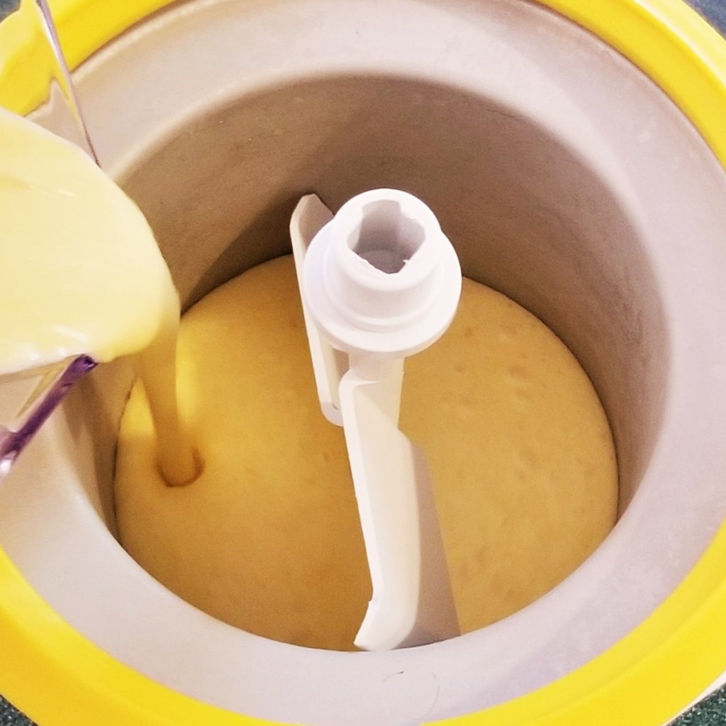 Prepare equipment: Ice cream maker (for manual Donvier™, place metal tub upright in the freezer for at least 24 hrs.), or metal mould(s) pre-chilled in the freezer.