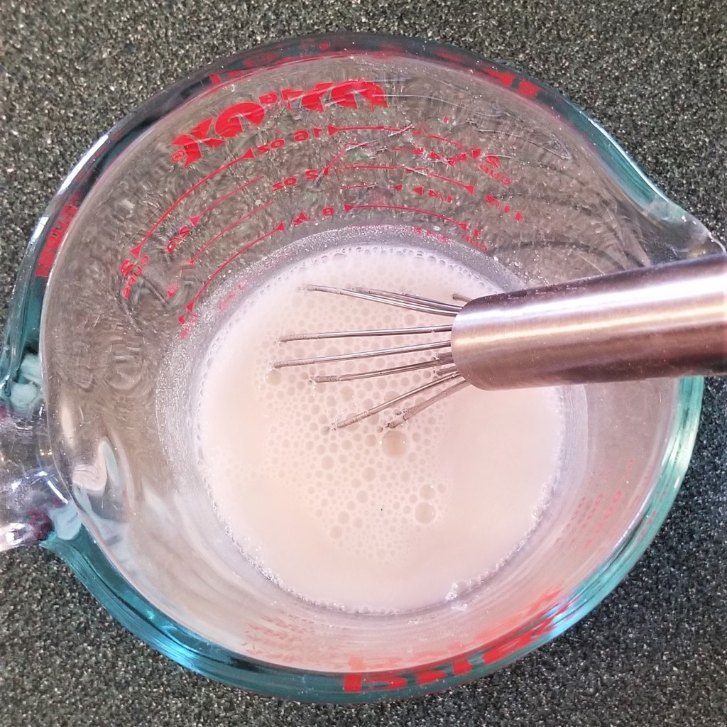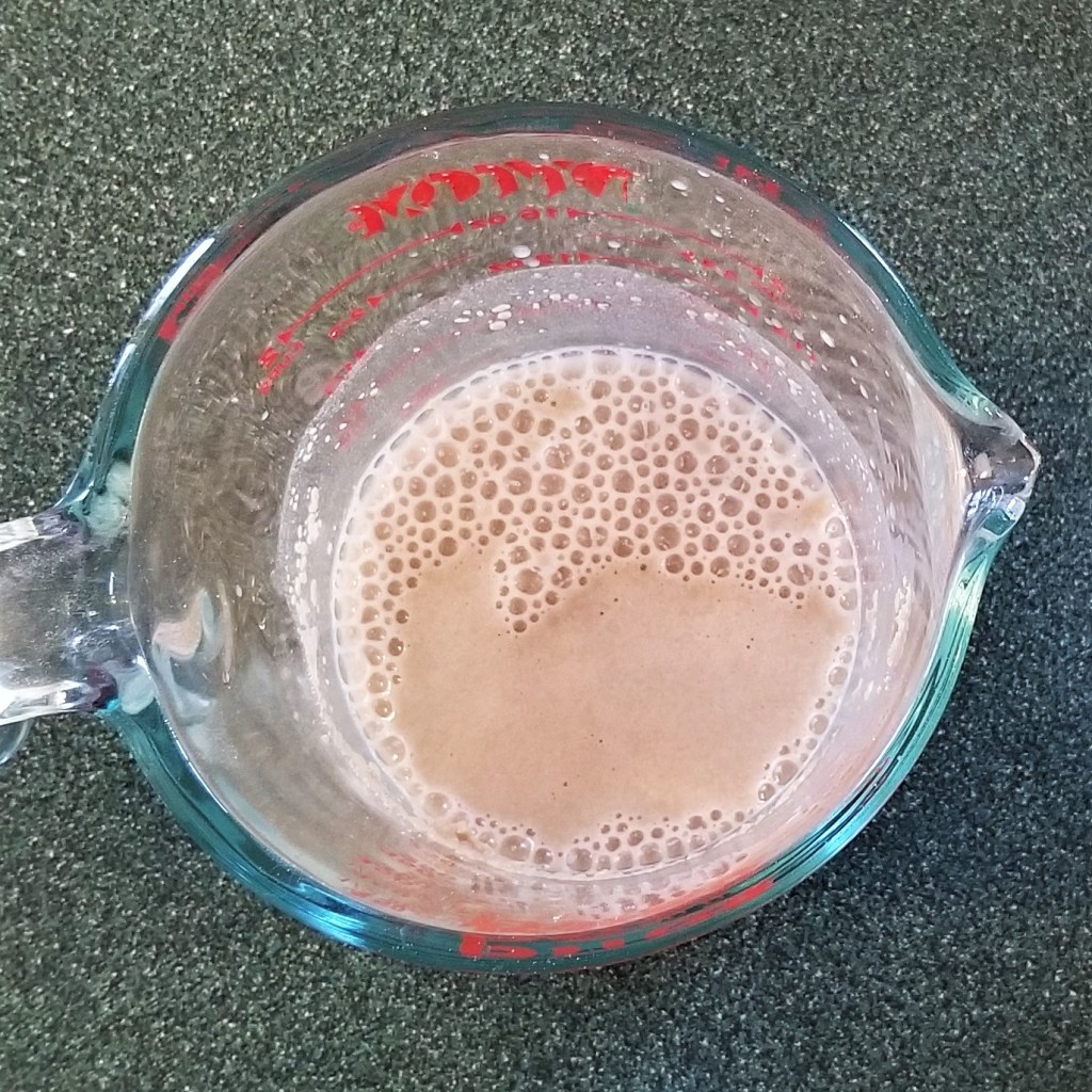 The mix should start bubbling almost right away (photo below, left). Allow to rest for fifteen minutes, until foamy (photo below, right):