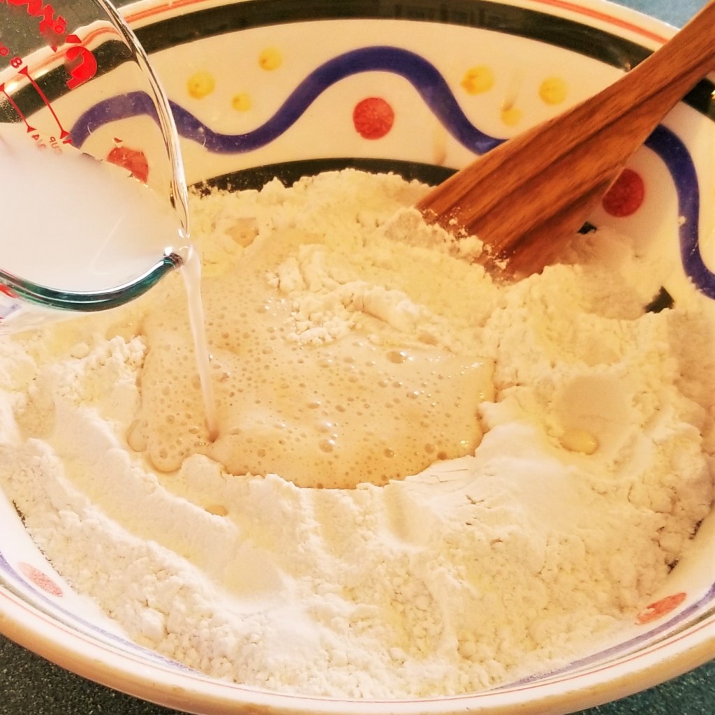 Place flour in a large mixing bowl; take two tablespoons from the flour and transfer to a cup: