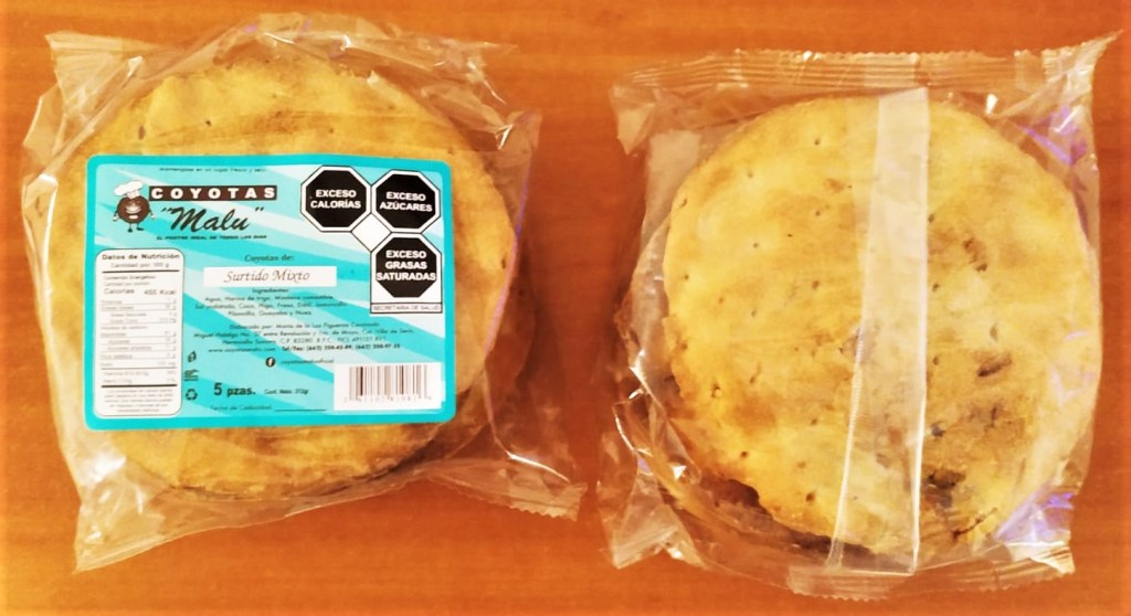 Coyota is also a type of pastry created in Northern Mexico, traditionally sweetened with raw sugar; there is some consensus that the pastries were named after the young dark-skinned women (coyotas) who used to sell them on the streets of Seris, a municipality that now is part of Hermosillo, the capital city of the Mexican state of Sonora. Coyotas are formed with two discs of dough, pressed together to contain a sweet filling in between; the traditional filling is crushed piloncillo* (a type of unrefined sugar). Although the original recipe is said to remain secret, coyotas have evolved and are baked all over Sonora, and its neighbouring state, Sinaloa; traditional recipes call for yeast, lard and piloncillo syrup, while more modern recipes may call for baking powder, vegetable shortening, and sugar, while fillings may include jamoncillo or dulce de leche (cow’s milk sweets or caramel, respectively), coconut, date, or guava pastes, etc.