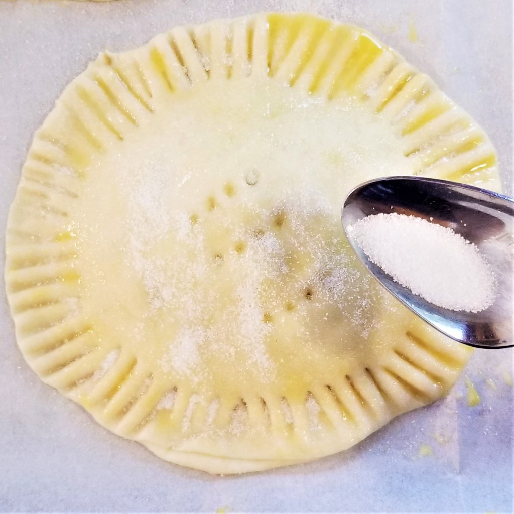 Optional: Sprinkle sugar after brushing with egg wash: