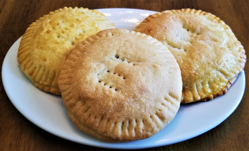 They all look golden brown and crispy (from left, with egg wash, plain, and with egg wash and sugar):