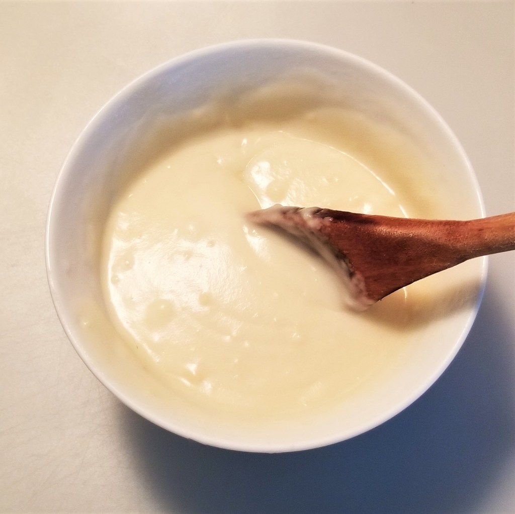 Increase heat back to medium, and add and incorporate the other cup of milk (photo below, left). Season with white pepper, and adjust salt if needed. Continue stirring (photo below, right):