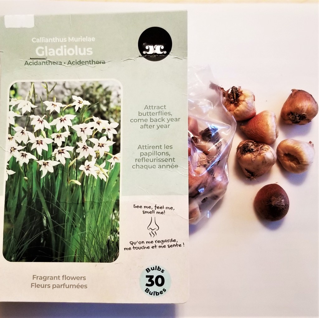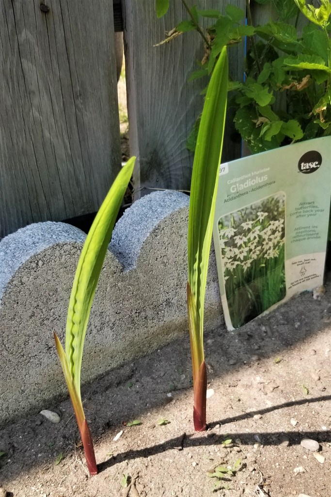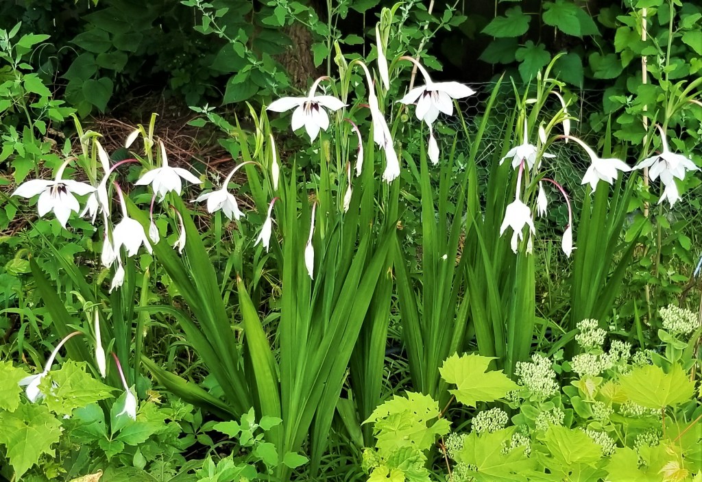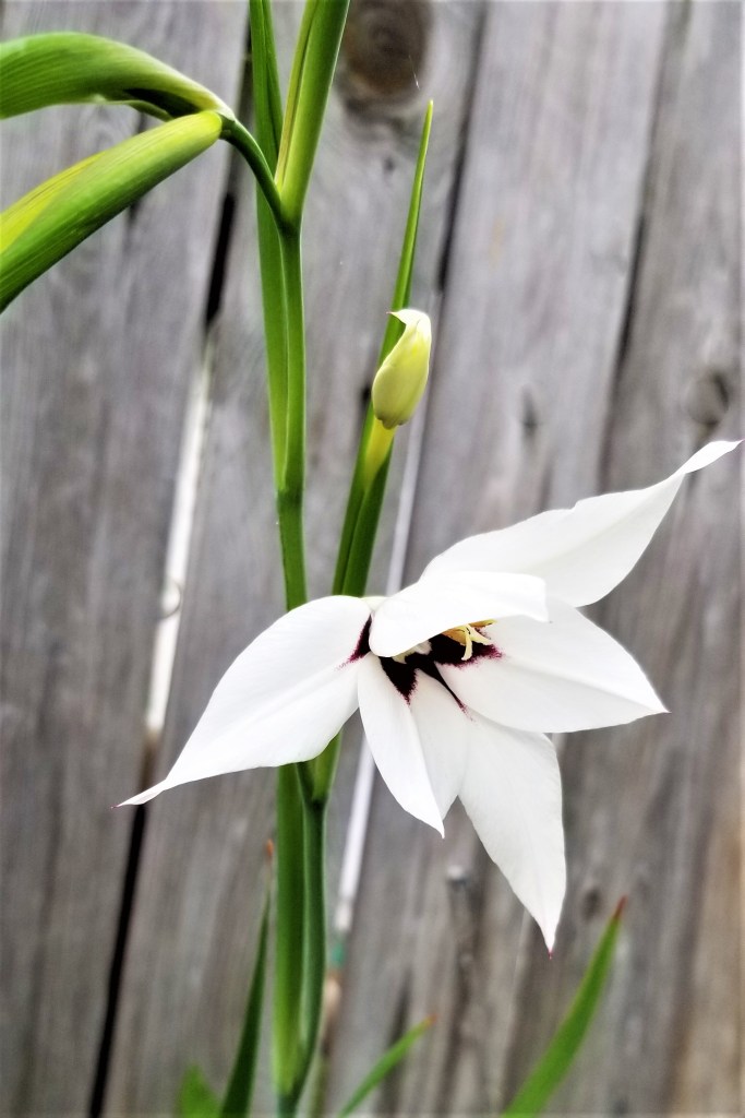 Last, but not least, Gladiola (Gladiolus sp.) are perhaps the most surprising of this group.  Are they really edible?  There is some turmoil about the corms; some sources report toxicity, but they are used in some African regions as food and as a remedy for coughing, gastrointestinal issues, and colds.   The flowers are edible, after the centres are removed, with a “slightly tart and vegetable” taste; one interesting serving suggestion is to fill the blossoms with cream cheese, or ice cream.  This is my first year planting gladiola, and if anything, these Acidanthera (Gladiolus murielae)  have been easy to grow, resilient, productive, and beautiful: