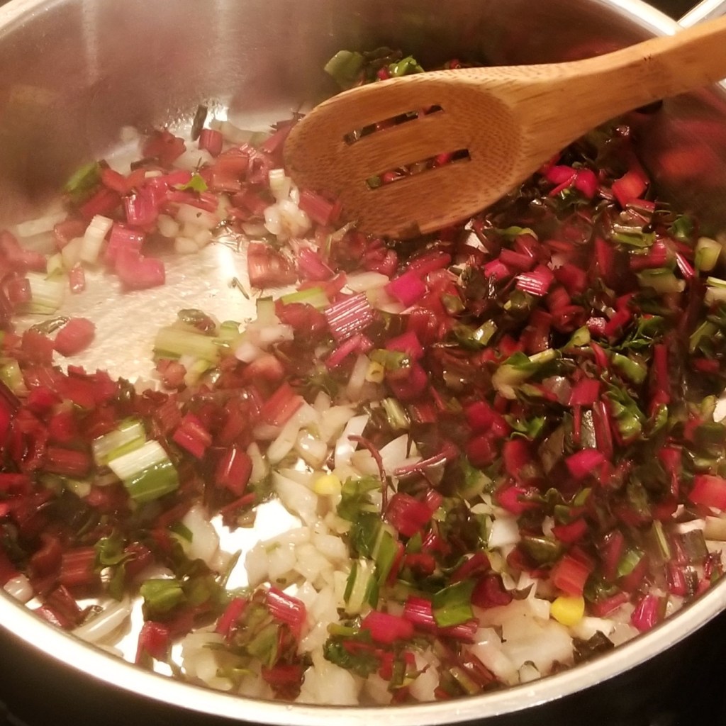 1 bunch Swiss chard; washed, stems and leaves sliced separately