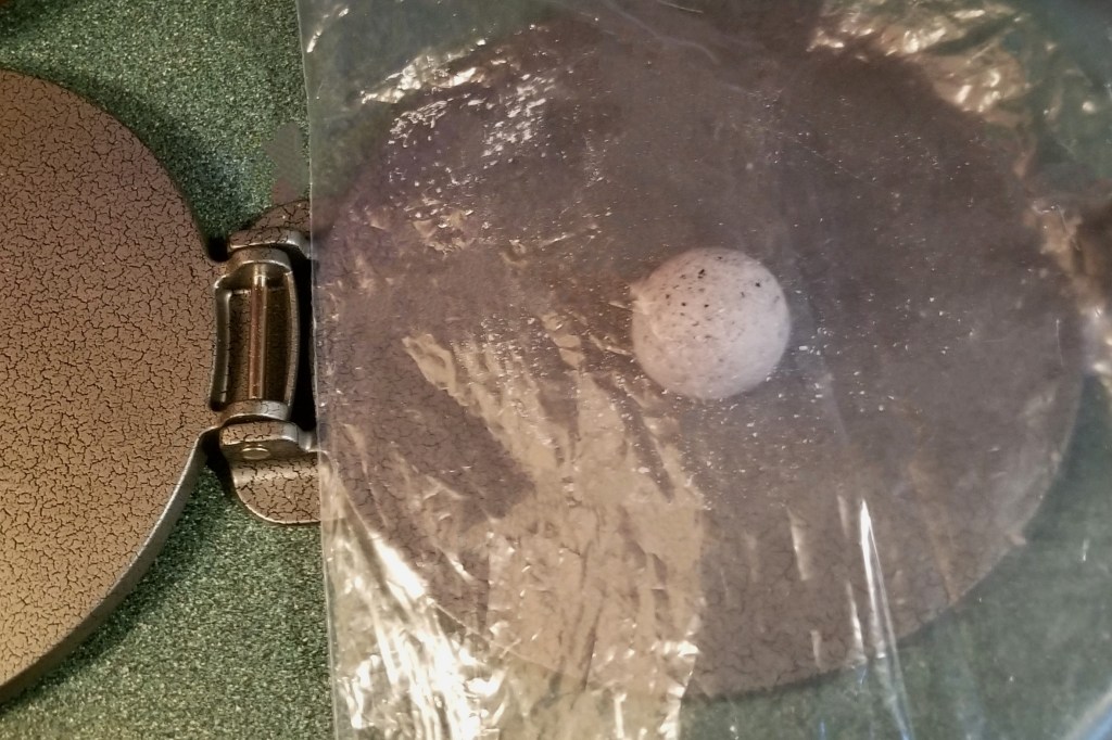 Flip disc (photo below, left).  Allow to cook until the surface starts to form small bubbles (photo below, right):