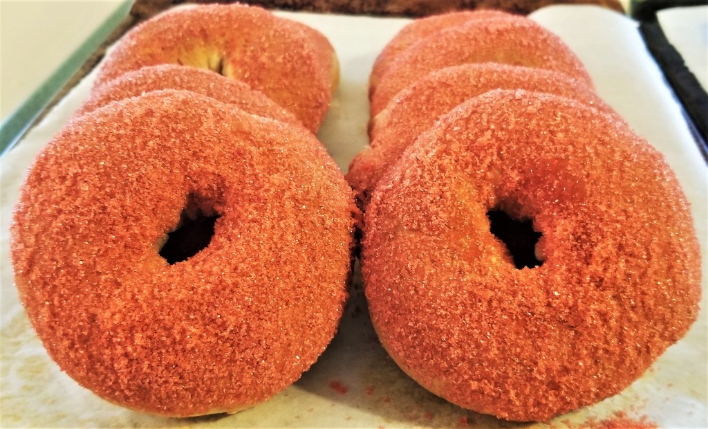 Golletes are a less-known, but very traditional, Day of the Dead bread, prepared mainly in Central Mexico. Golletes have a more compacted crumb compared to the previous two types; they are shaped as rings, and coated with granulated sugar coloured in a bright shade of pink: