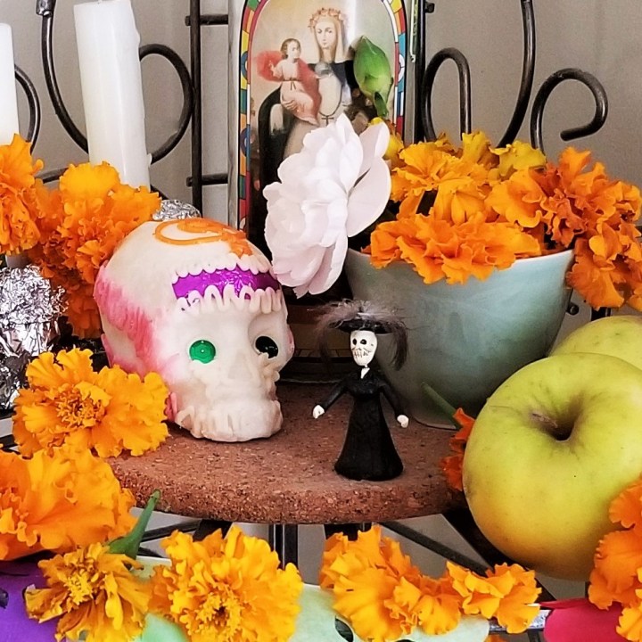 Beautiful altar and food offerings. ¡Feliz día de muertos!