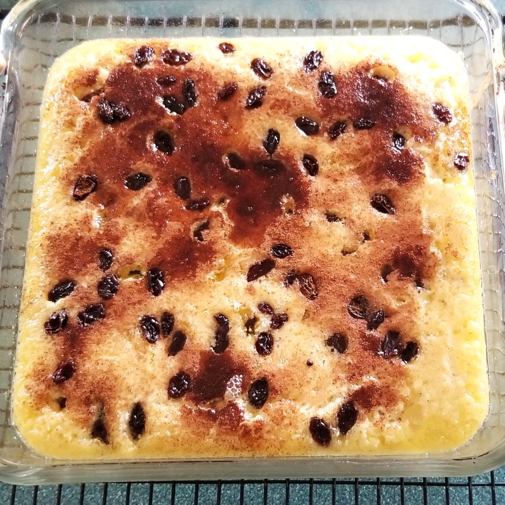 Spread raisins on top (photo below, left). Bake for 20 minutes, then remove from oven onto a cooling rack (photo below, right):