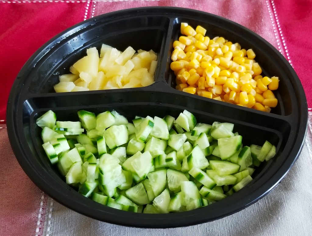 Extra Taco-Fredag – Corn kernels, cucumber and pineapple: