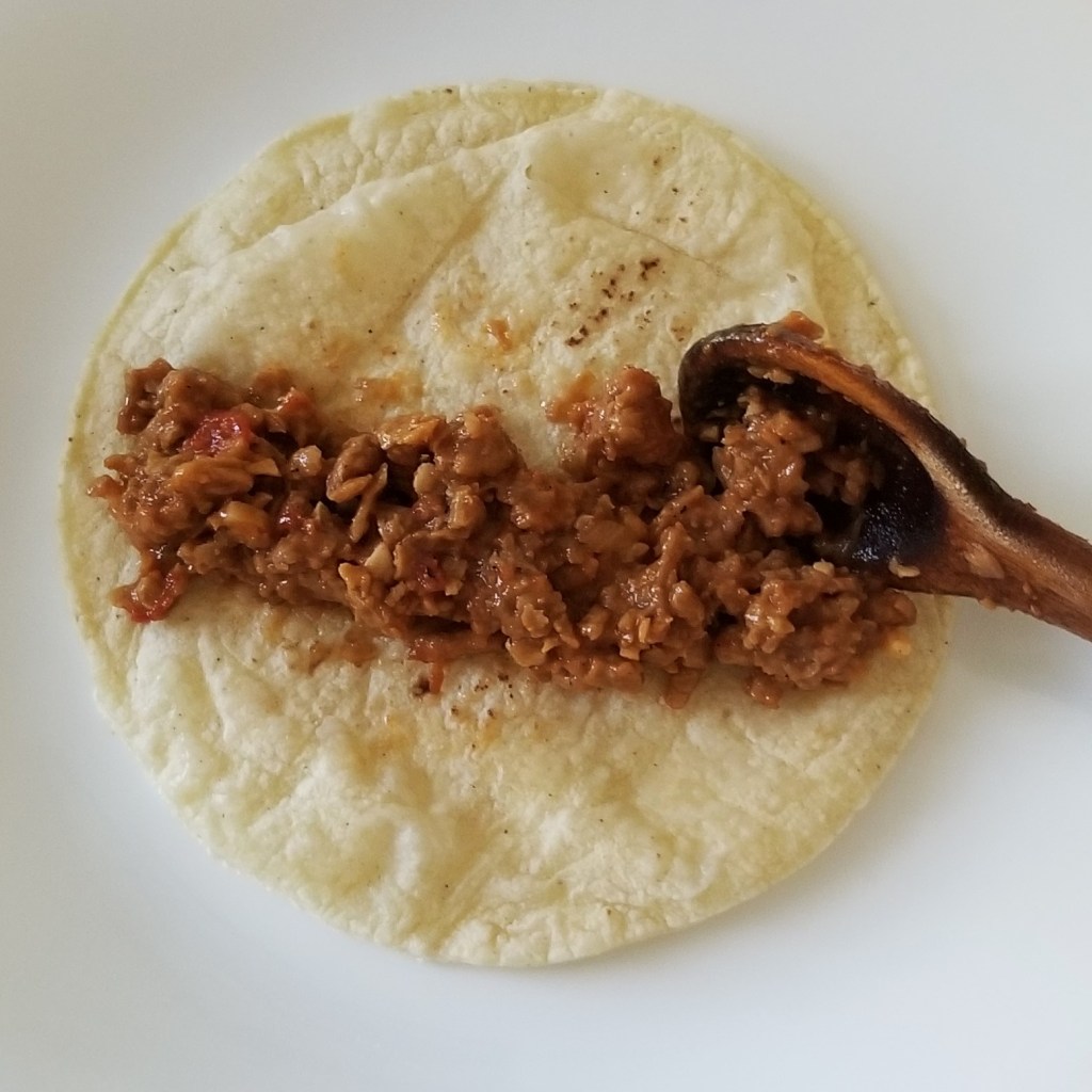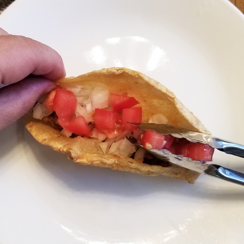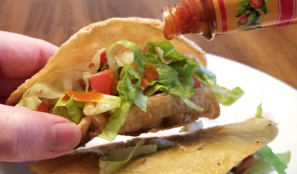 As each person eats any of the tacos, bottled hot sauce may be added, to taste: