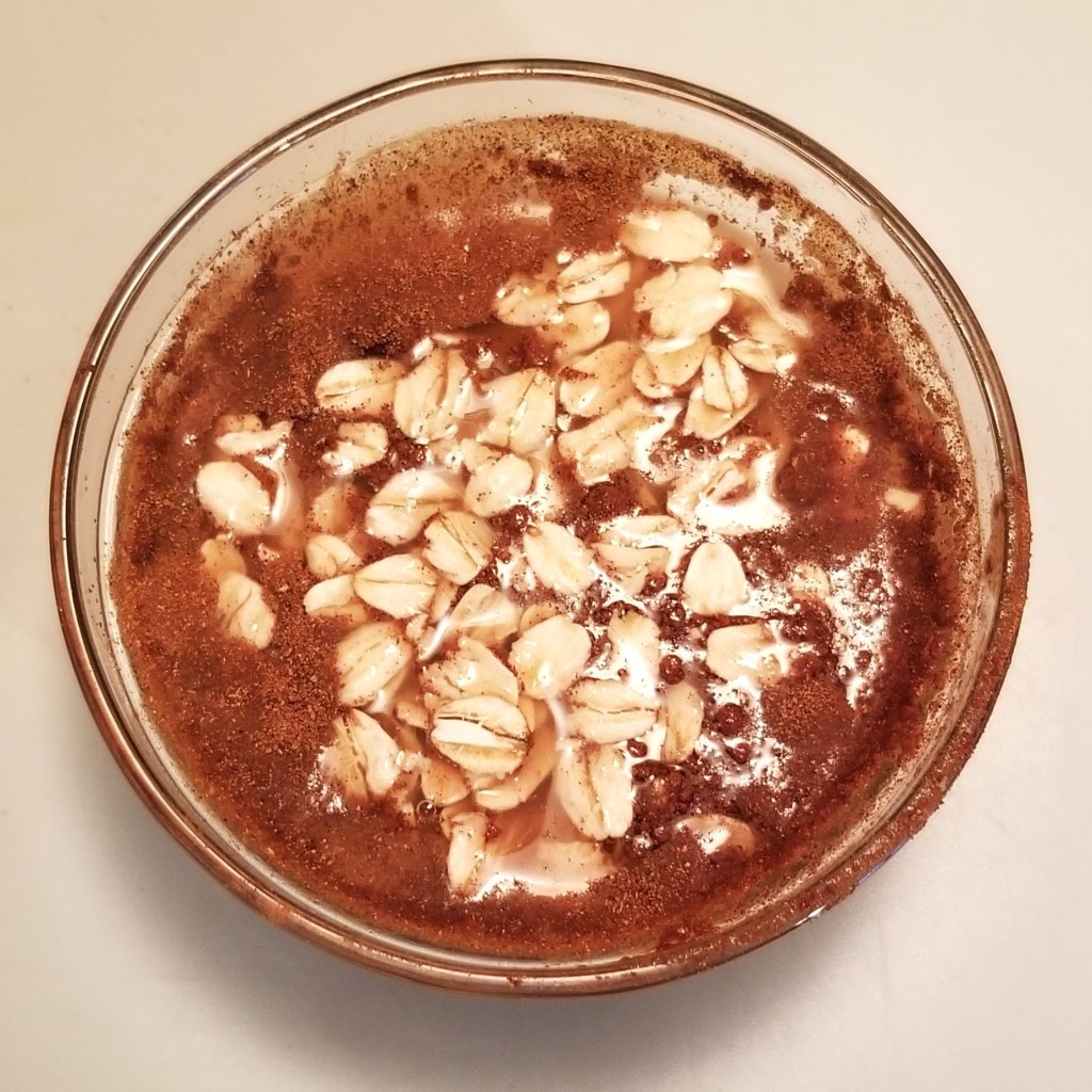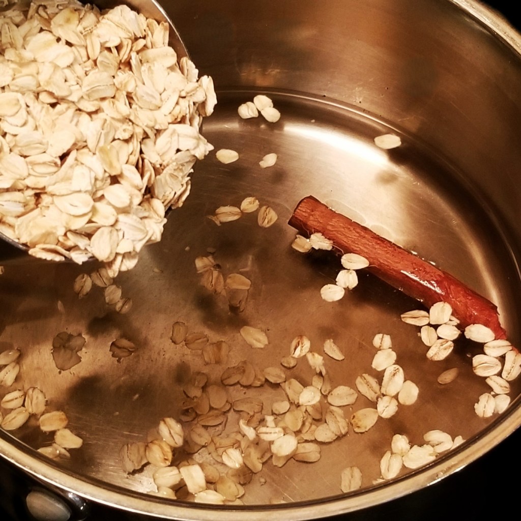 Place oats and cinnamon in a bowl, and add two cups of water: