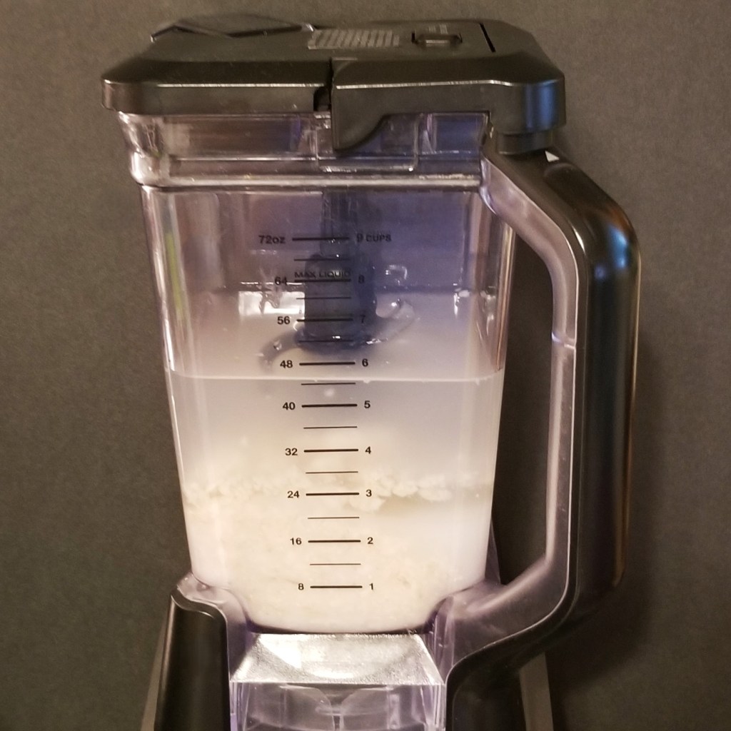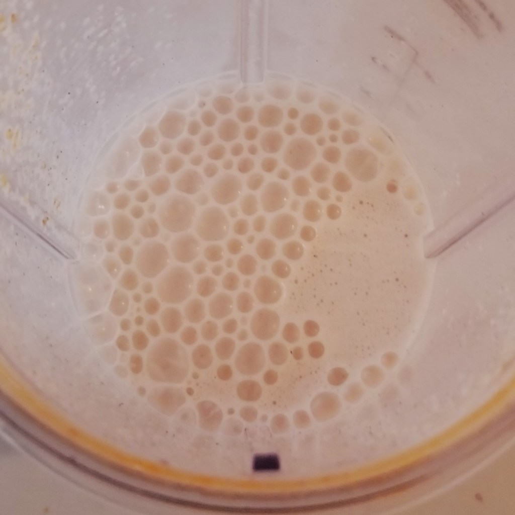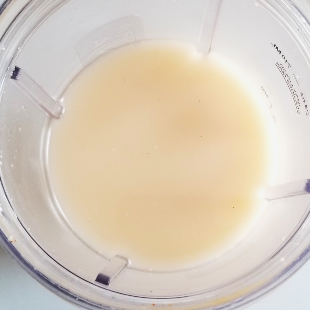 Place all ingredients in the blender (photo below, left), and process until smooth (photo below, right):
