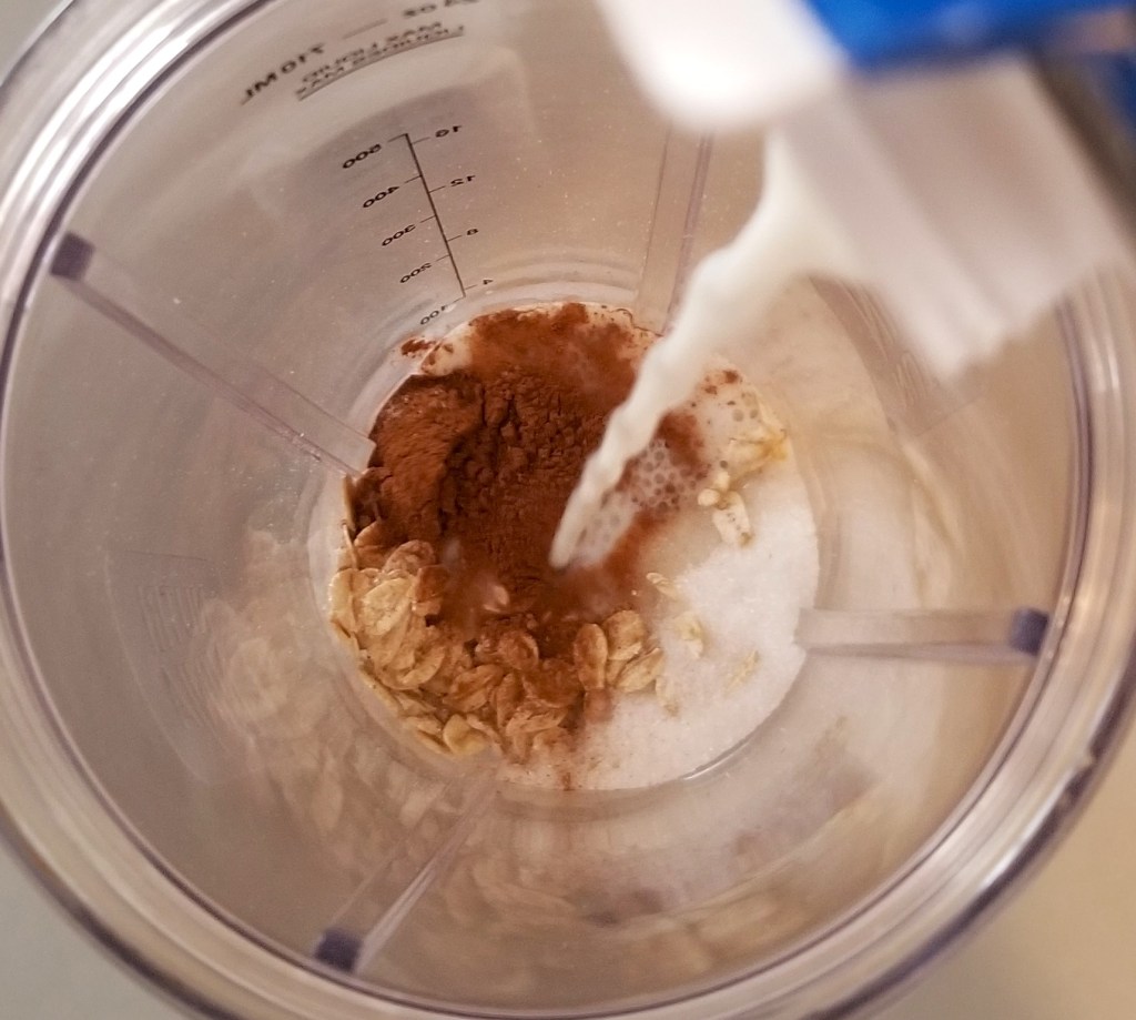 Place oats, cinnamon and sugar in a blender jar, then add milk: