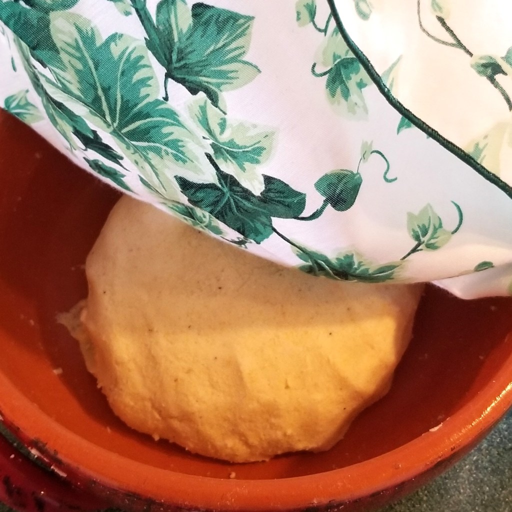 Continue kneading by hand, adding enough water to completely hydrate the flour (1¼ to 1 ½ cups, total), and form into a ball of soft dough (photo below, left). Allow to rest for 20 to 30 minutes, covered with a clean kitchen towel (photo below, right):