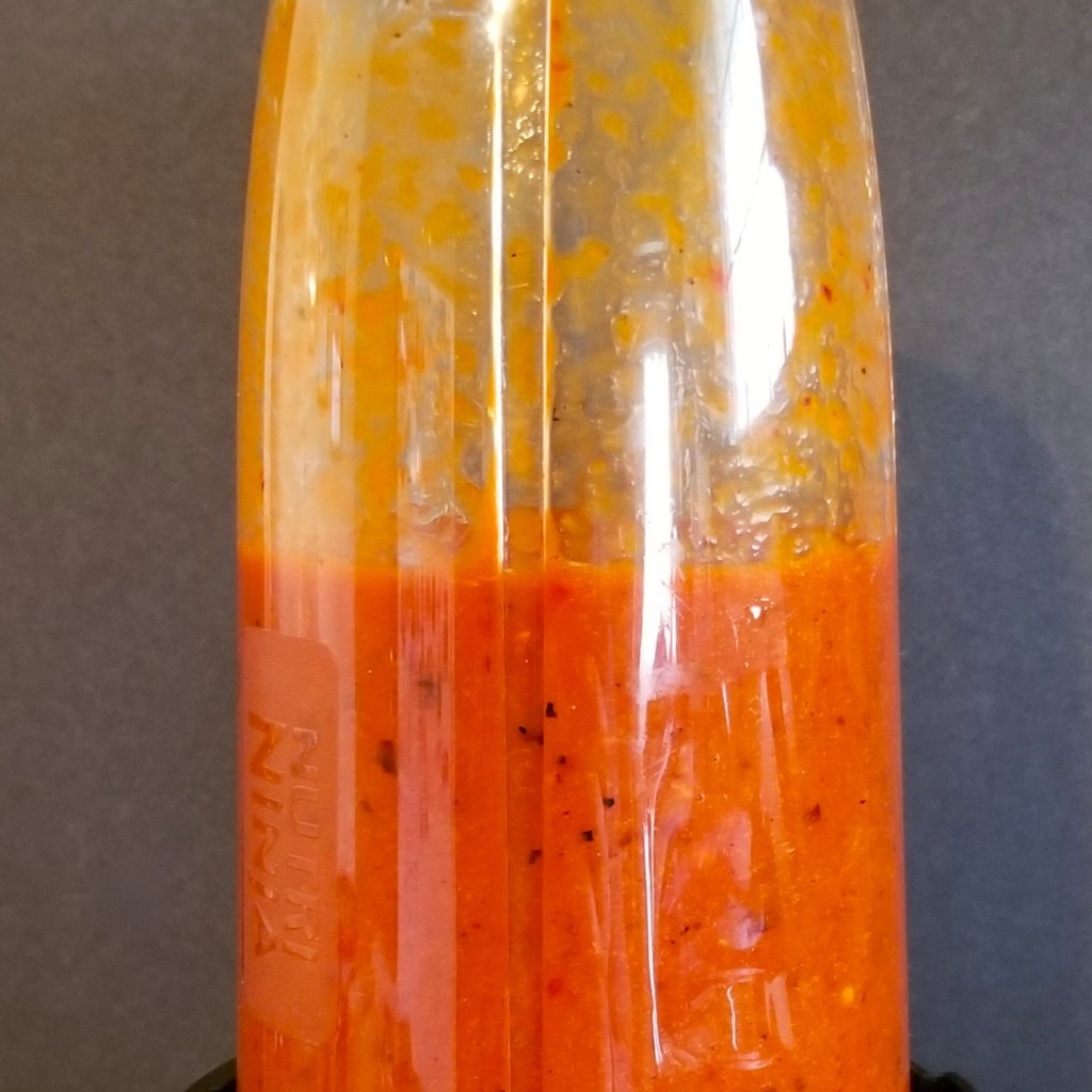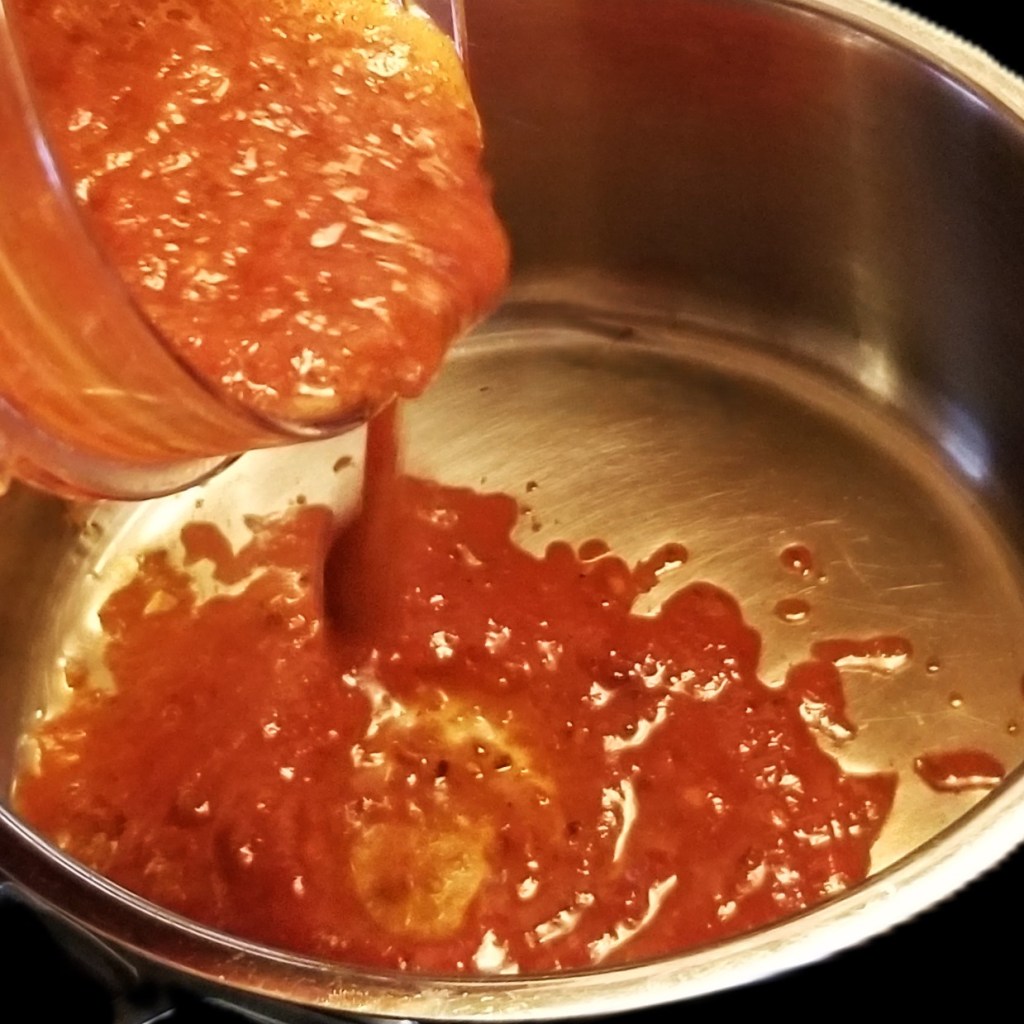 Warm up one tablespoon of oil in a pan over medium heat, then pour in sauce from the blender jar (photo below, left); cook for 10 to 15 minutes, stirring occasionally, until all flavours have melded, and salsa has thickened (photo below, right):