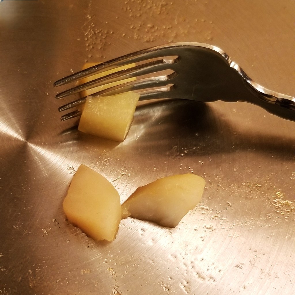 Add water to empty blender jar, collecting leftover sauce, and pour in the pot, to desired soup consistency (photo below, left). Bring back to boil, reduce to a simmer, and allow to cook, covered, until potatoes and chayote are fork-tender (photo below, right):