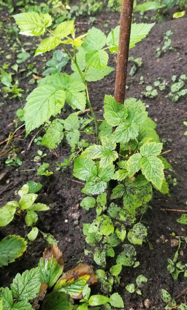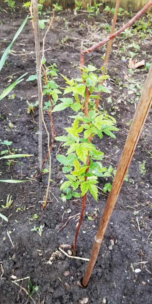 2) Raspberries (Rubus idaeus) – I mentioned that my neglected raspberry canes are in recovery this season, so I am not expecting fruit, but the leaves are looking stronger and promising for future crops (photo below, left, a month ago, and right, this week):