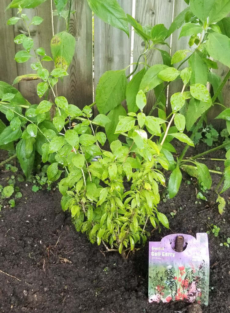 Goji Berry (Lycium barbarum), photo below, left last month, and right, this week: