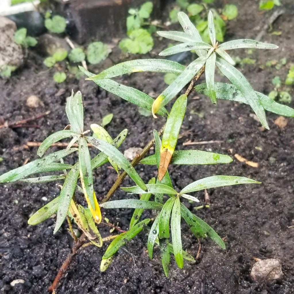 3) New plantings – The seedlings and small plants I bought this spring are still alive, but a bit on a tightrope right now, developing new growth, but looking stressed: