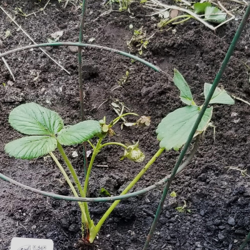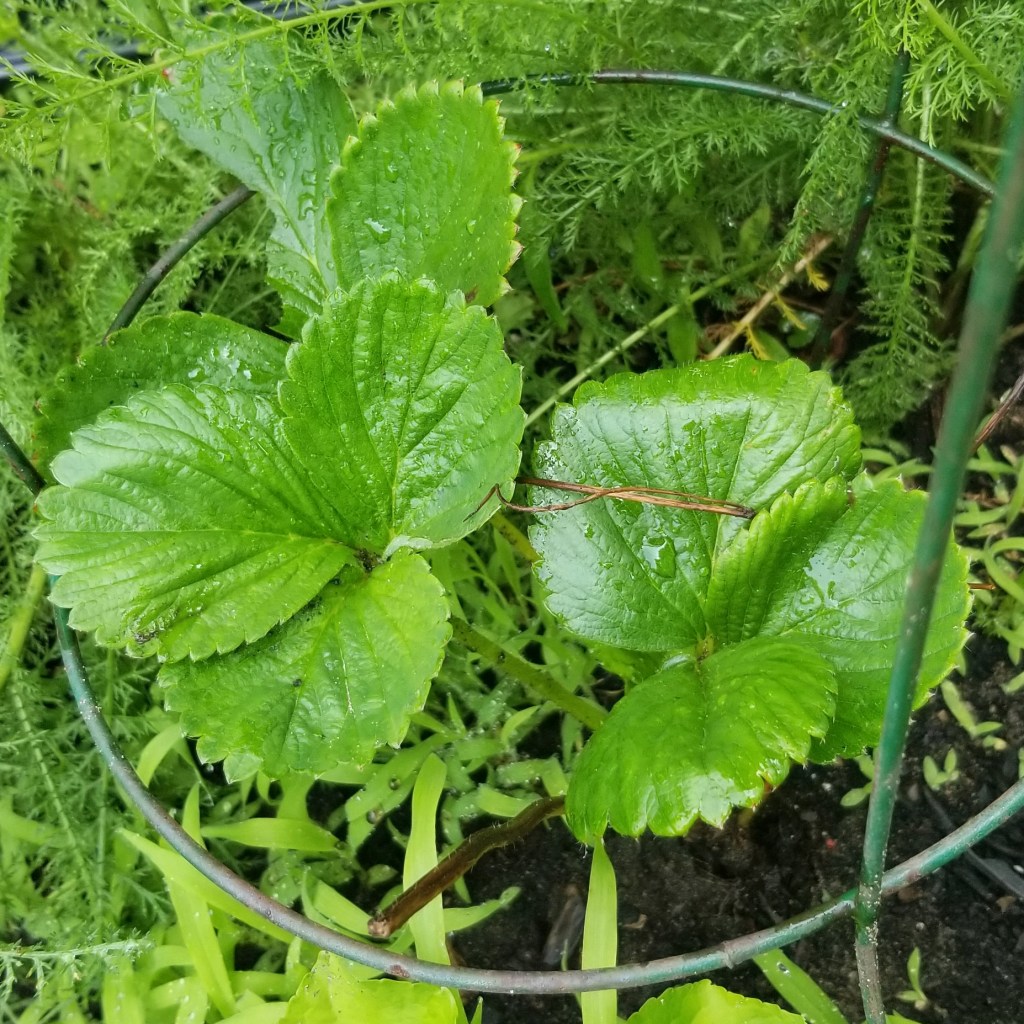 4) Strawberries (Fragaria sp.) – In spite of their name, botanically speaking not berries but aggregate fruits, my new climbing Albion plants came with a small fruit, and now are green and healthy, but not a trace of flowers yet (photo below, left a month ago, and right, this week):
