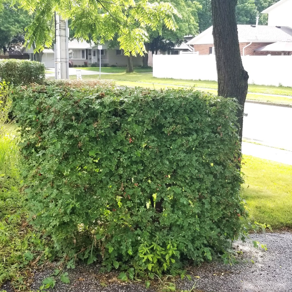 1) Black Currants (Ribes nigrum) – The berries mature at slightly different times along each branch, so I harvest the ripe ones as they turn almost black on the branches (photo at the top of this post). Currants are hardy plants, and I have had a healthy one and nice crops every year for almost a decade now, after a good friend gifted me a cutting from her plants. The cutting grew from one to four feet, and has expanded in width as well; a couple of years ago, I propagated a few cuttings for my friends, and kept one, now growing to the left of the original one (both seen in the photo, below):