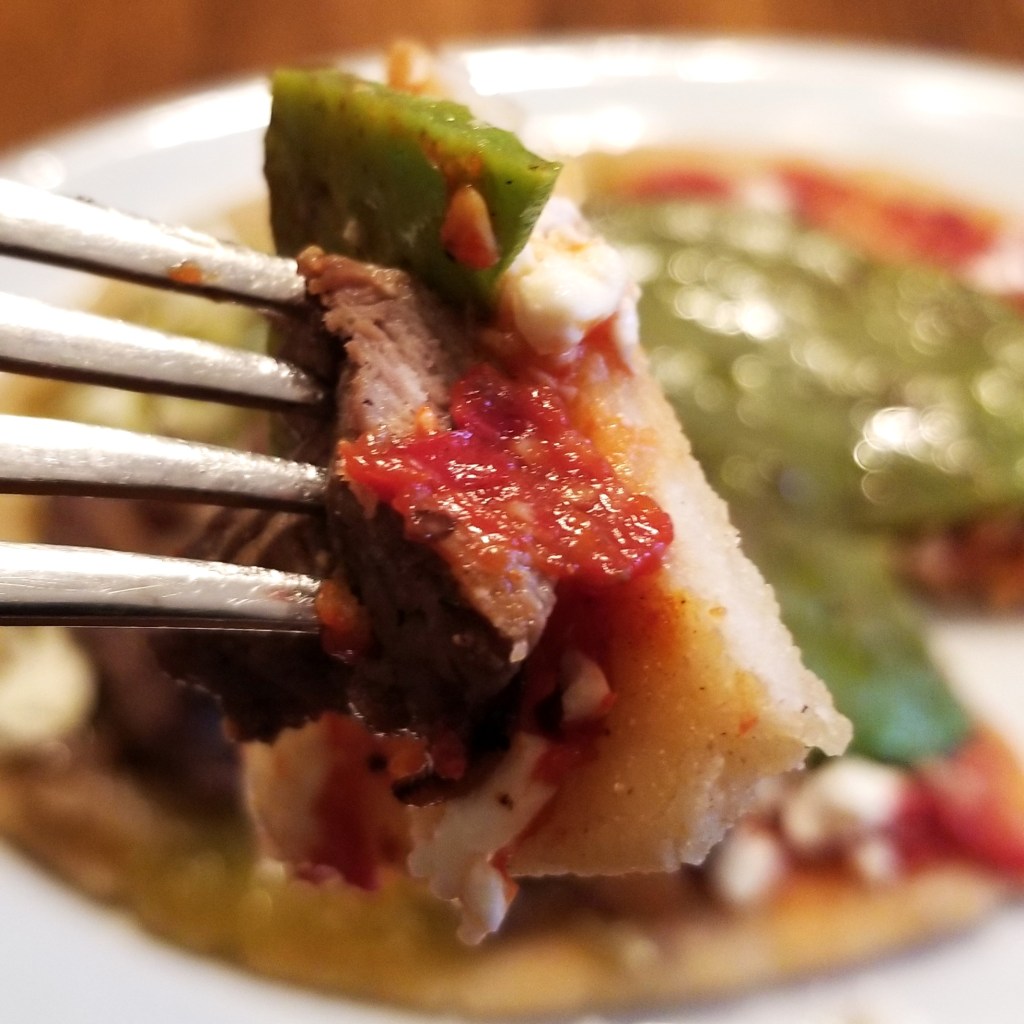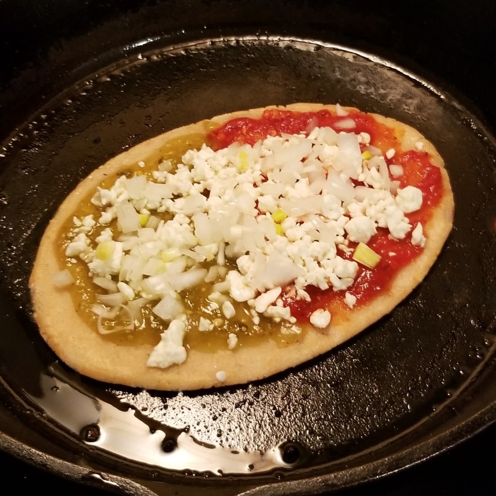 Toppings of choice, optional: steak or other meat, pickled onions, paddle cactus, beans, etc.