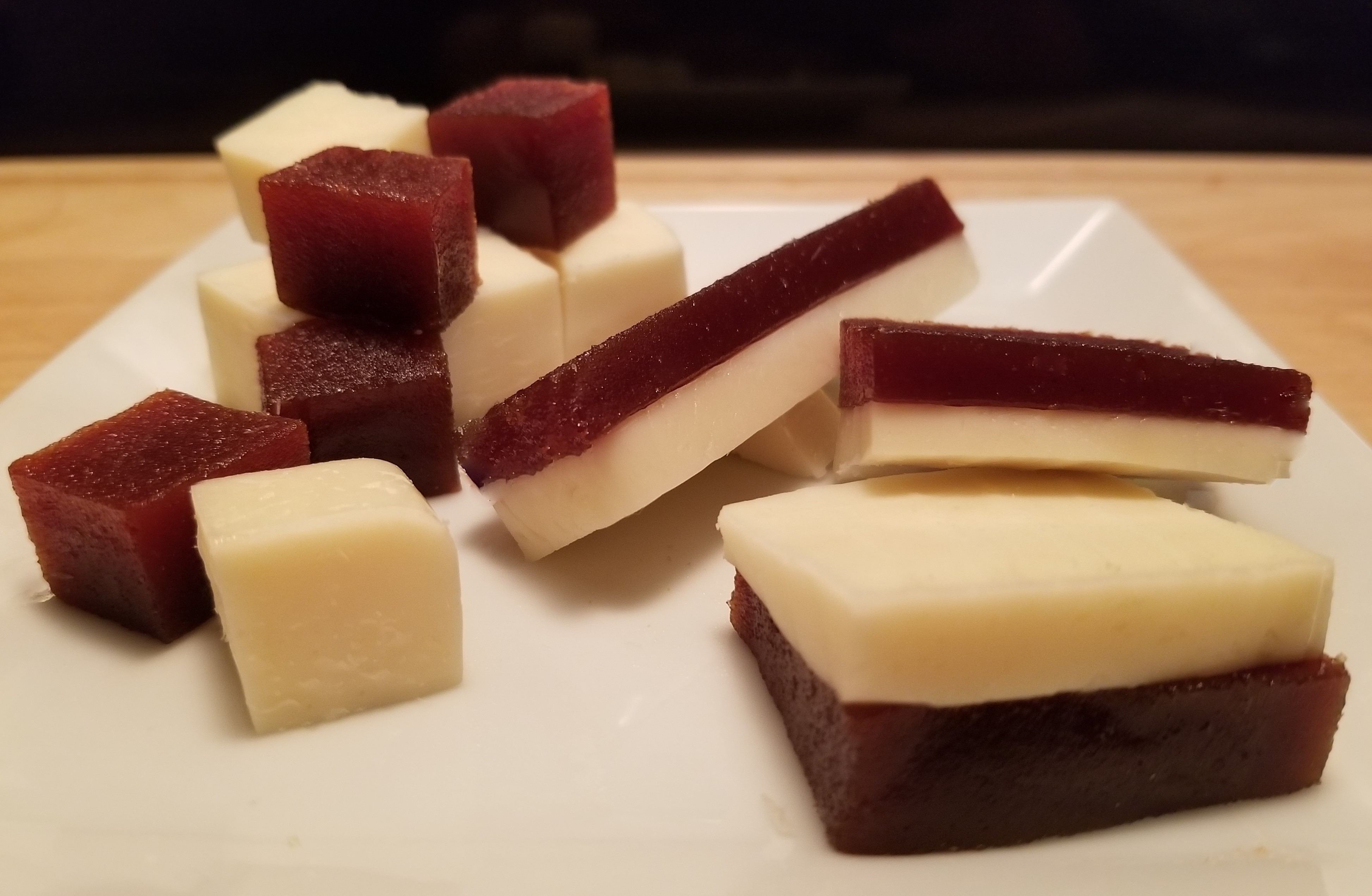 The jelly may be spread on toast, or served by itself as a treat, sliced or cubed, as shown at the top of this post. in Mexico, the most popular way to enjoy ate is as a snack or appetizer, built into layers with cheese such as Mexican Manchego (friulano is a close option, as shown below):