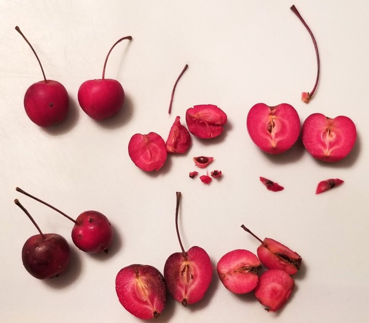 The flavour of the crabapples is similar to regular apples, but it definitely has distinct undertones that get enhanced when the fruit is cooked with sugar. I admit that cooking with crabapples was a labourious project, but it was very rewarding to be able to use the gifts from nature, and well worth trying at least once, especially seeing my family enjoy a new and unique flavour, and the jelly.