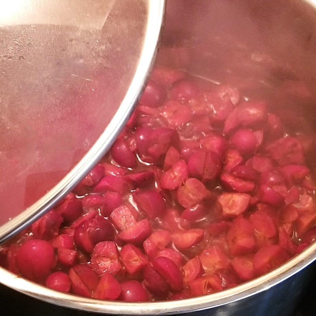 Place fruit and water in a large pot over high heat; bring to boil, then reduce heat to medium and cover pot: