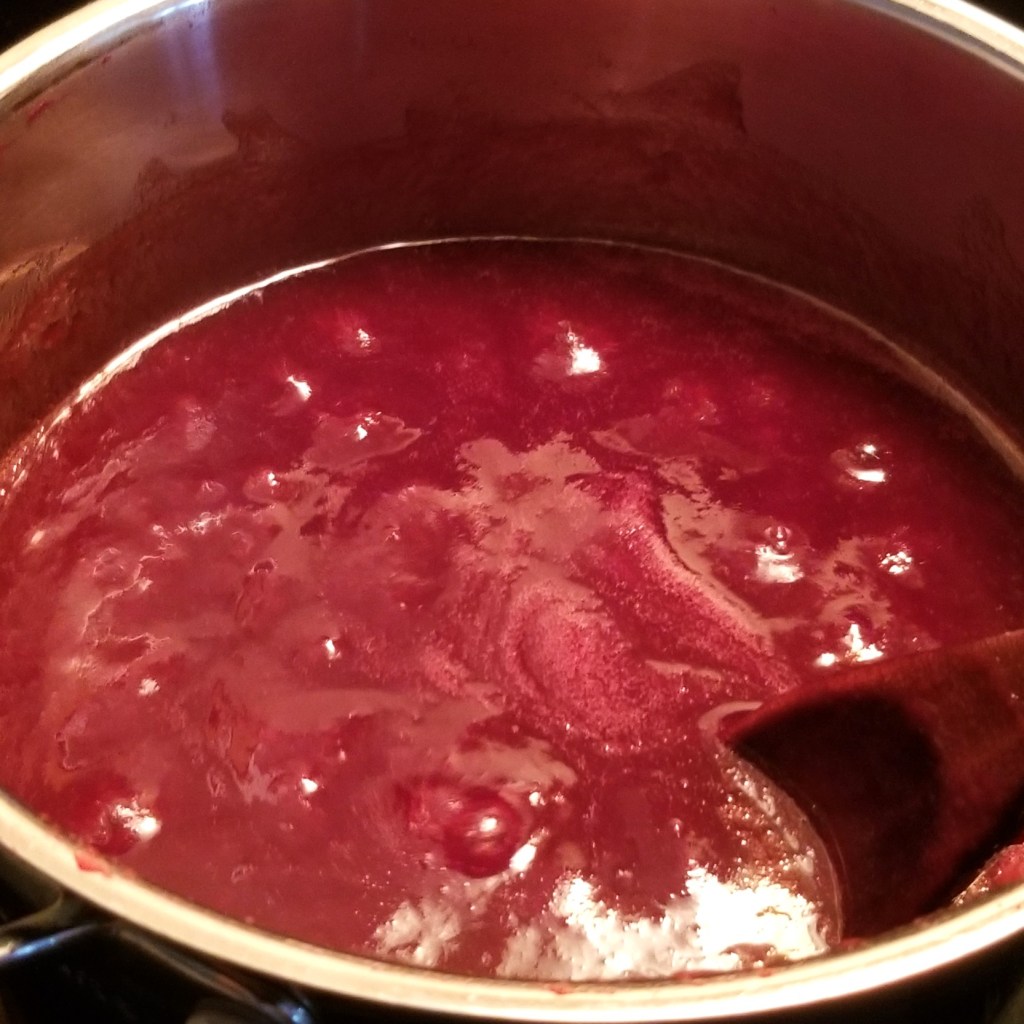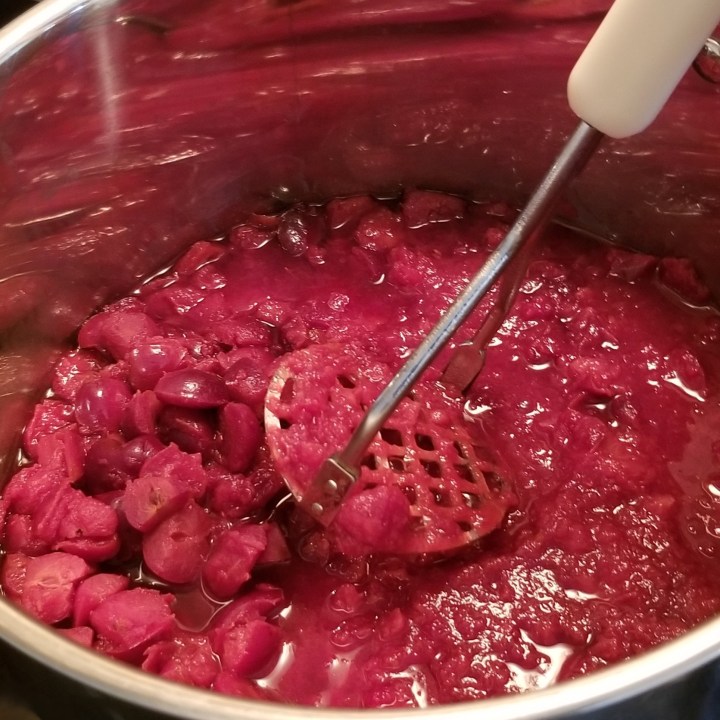 Allow to cook for thirty minutes, stirring occasionally. Uncover pot and remove from heat. Mash fruit: