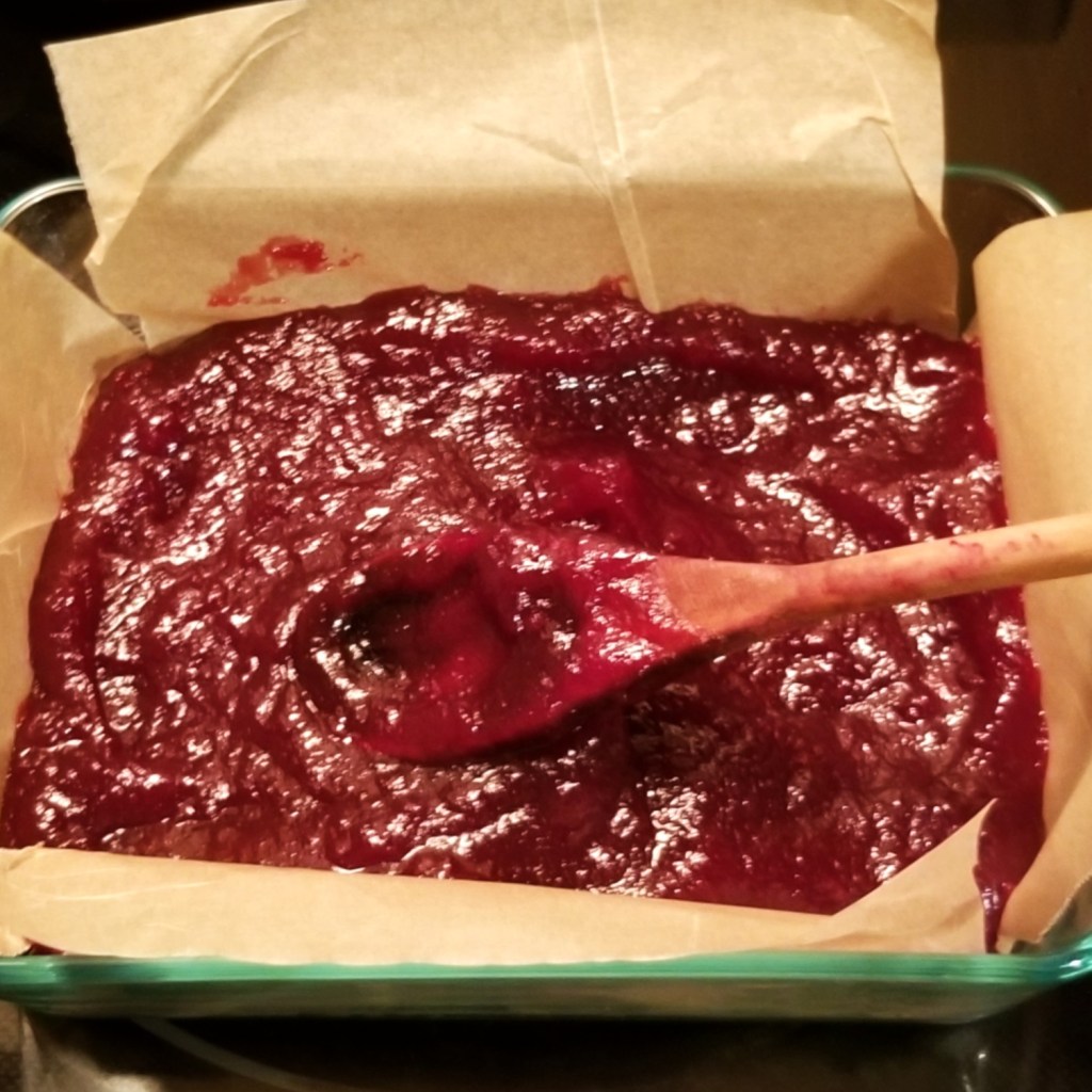Continue cooking, and stirring frequently, for forty five minutes to one hour, until thick as a paste, and a clean streak stays after swiping the bottom of the pan with the back of the spoon: