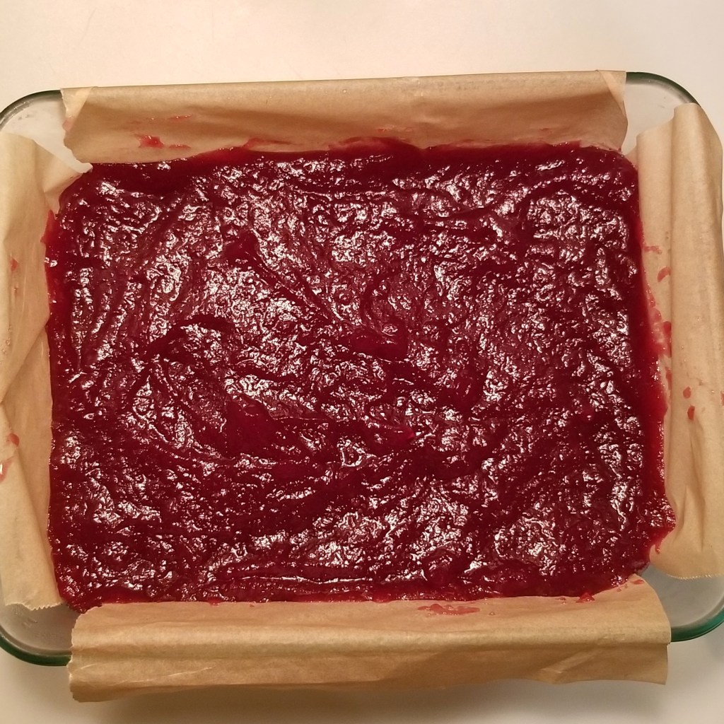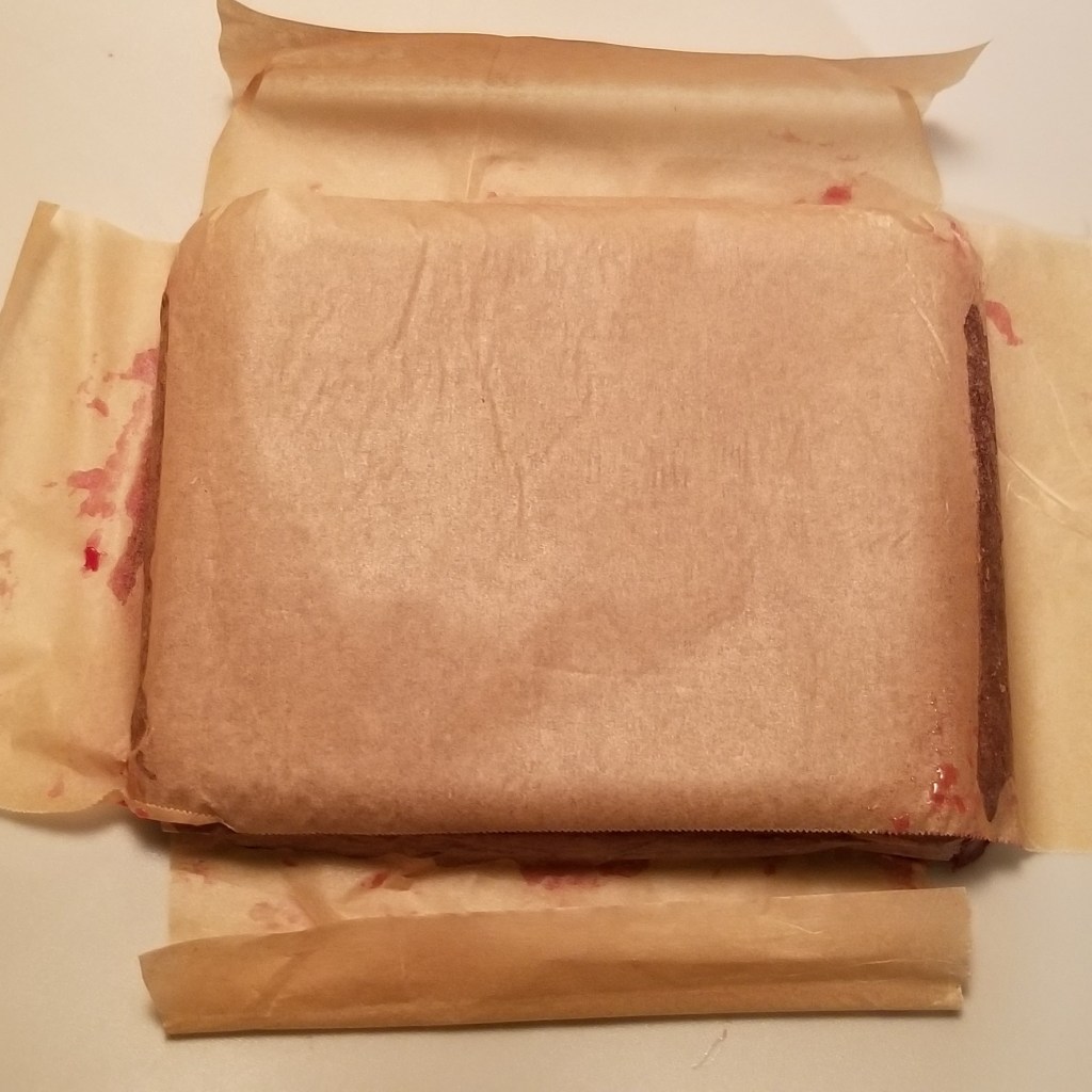 Prepare a rectangular mould by lining with strips of parchment paper. For this batch, I used a 9×7 inch (23×18 cm) glass container. Reserve.
