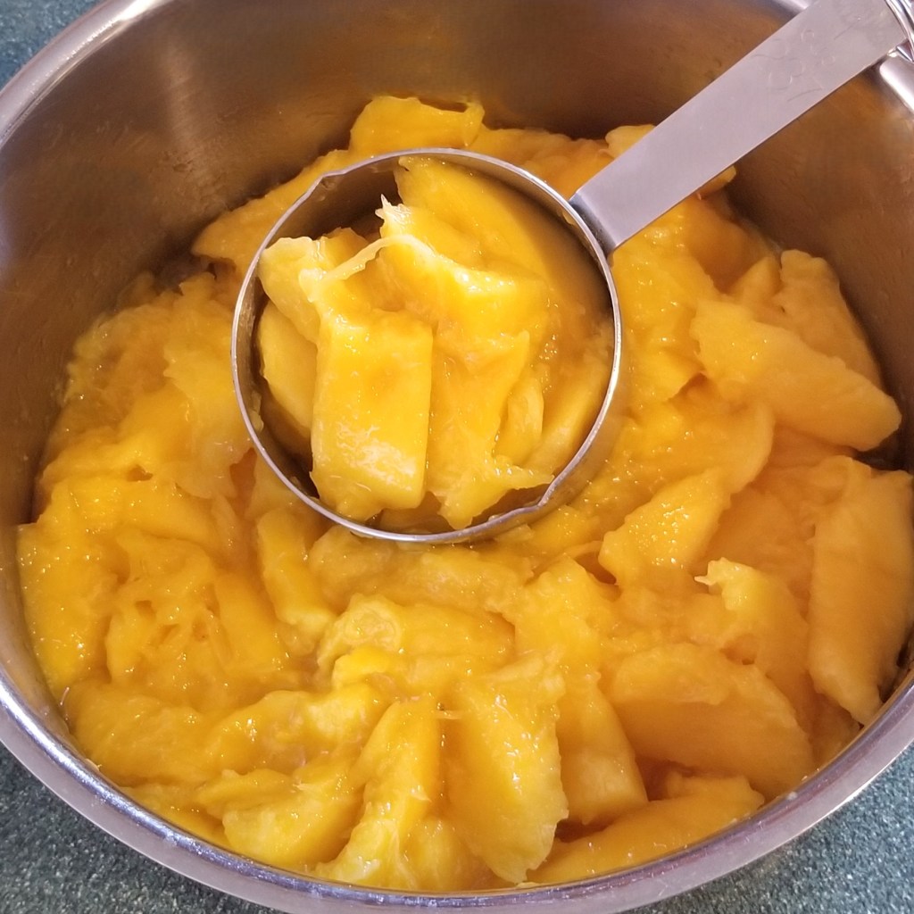 5 large mangoes, such as Tommy; washed, peeled, pit removed, and cut into chunks